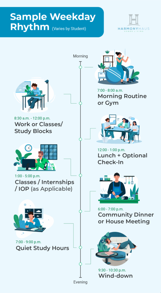 - Harmony Haus addresses this gap through structured, student-friendly sober living for students in recovery.